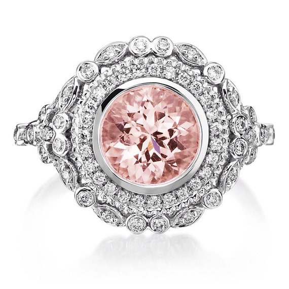 Morganite Engagement Ring 2 28ct 18k White Gold Halo Diamond Etsy