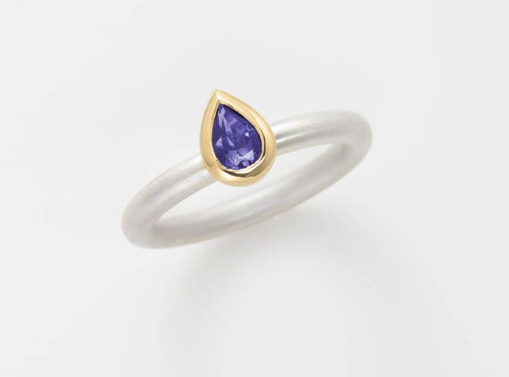 Stacking Ring Ixtile Ring In 18kt Silver And Gold Blue Stone Etsy