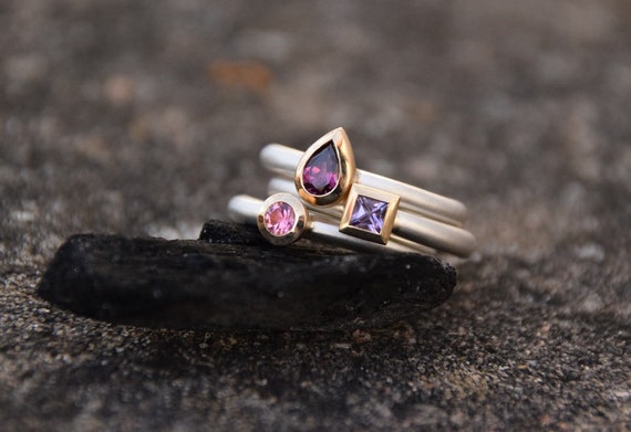 Ring Sapphire18kt Rose Gold Stack Ring Wedding Ring Gift Etsy