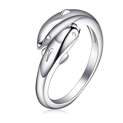 Silber Paar Delphin Muster Verlobungsring Hypoallergen Open End
